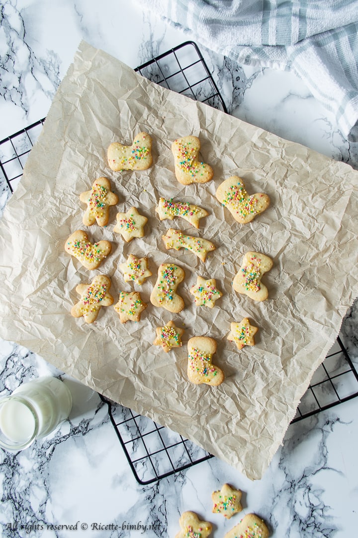 - Ricavare i biscotti con degli stampini della forma che preferite e adagiarli su una teglia foderata di carta forno.