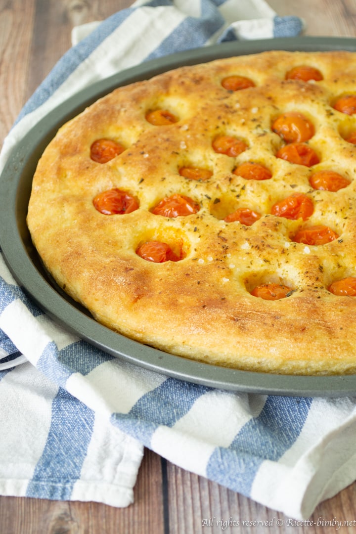 La ricetta per il bimby della focaccia barese con i pomodorini