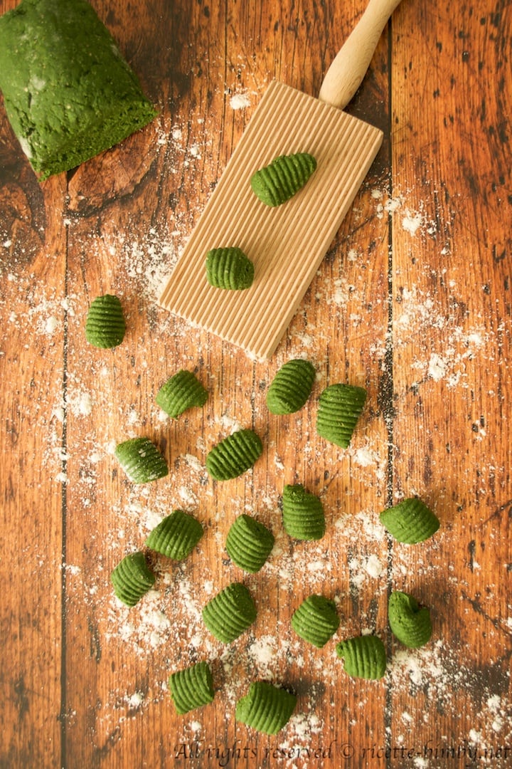 - Tagliarli a piccoli tocchetti e passarli sull’apposito taglierino o sui rebbi di una forchetta.