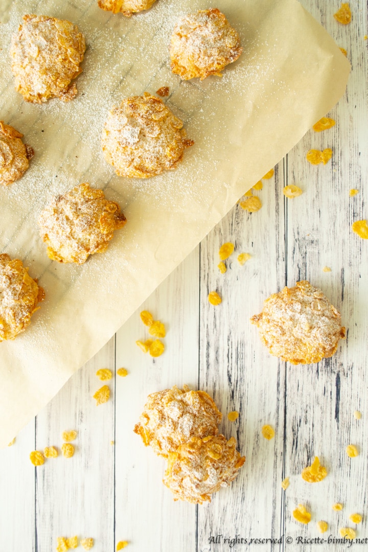 - Formare delle piccole palline con le mani bagnate e passarle sui corn flakes.