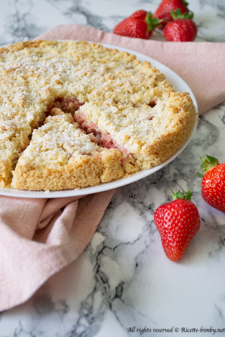 La ricetta per il bimby della torta sbriciolata ripiena di fragole.