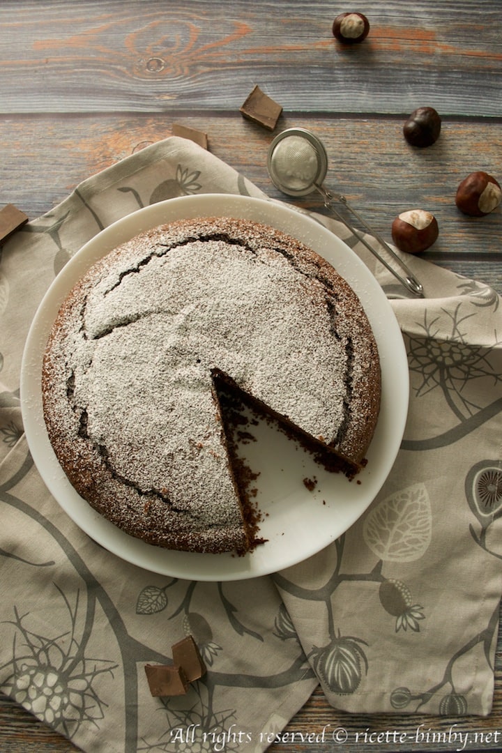 La ricetta bimby di una golosa torta con cioccolato fondente e farina di castagne.