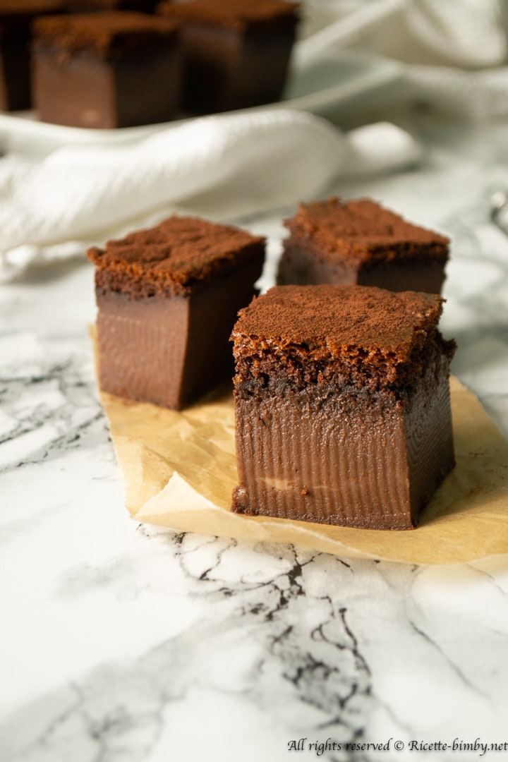 - Prima di servire la torta magica al cacao bimby, spolverare di cacao amaro o zucchero a velo e tagliarla a cubotti… Buon appetito!